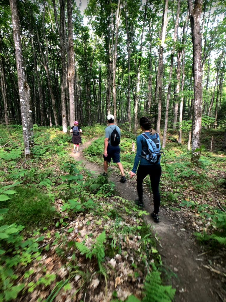 We went in August, so the weather was on the warmer side. We went on the perfect day though, because it was a little cloudy, which helped us from overheating. It was good to dress in layers though because some parts in the middle of the woods covered in trees in the morning were colder, so I wore a light flannel jacket. The middle of the trail it got pretty hot so I just wore a tank top. Then near the end of the trail it started to lightly rain, so I wore a hat and a light rain jacket. I also wore long leggings the whole time, which was good for the bugs. It was good to have some bug spray on us too, because in some parts of the trail we were getting swarmed by some flies. We all brought Camelbak backpacks for water. Because it wasn’t too hot that day, we didn’t drink nearly as much water as we thought we would.