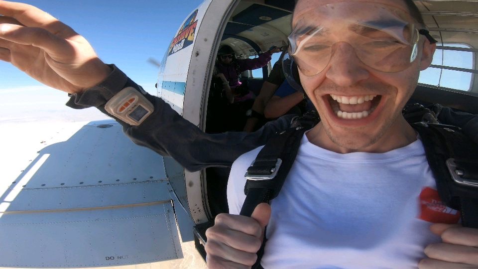 The following day in Moab we had to wake up fairly early, because we planned to ……jump out of a plane! I have been wanting to go skydiving for a long time and this seemed like the perfect opportunity with such amazing views in Utah. We found a skydiving place called Skydive Moab. They are highly rated and have good prices. Weirdly, Ian and I, didn’t feel nearly as nervous as we thought we would – instead very excited. The little airplane ride up to the top was probably the scariest part, because there was no turning back at that point!