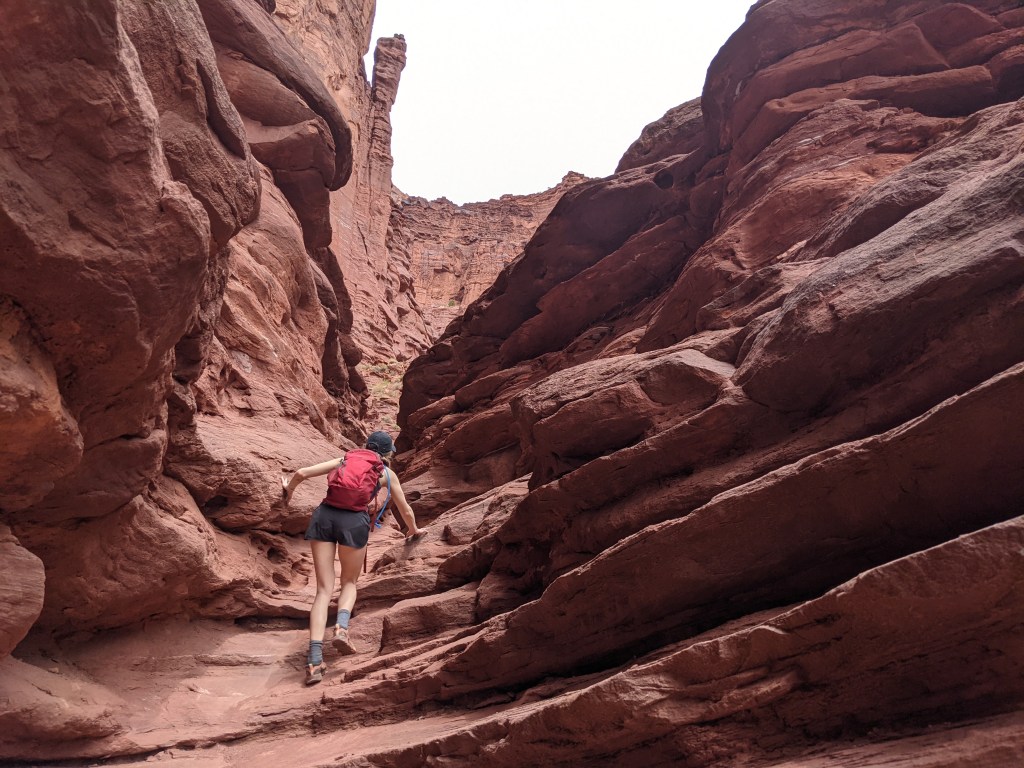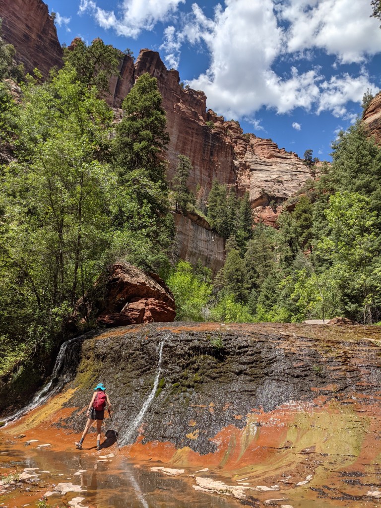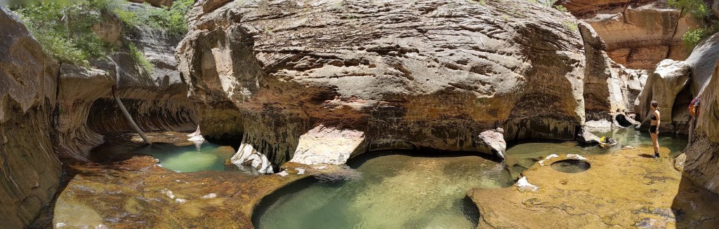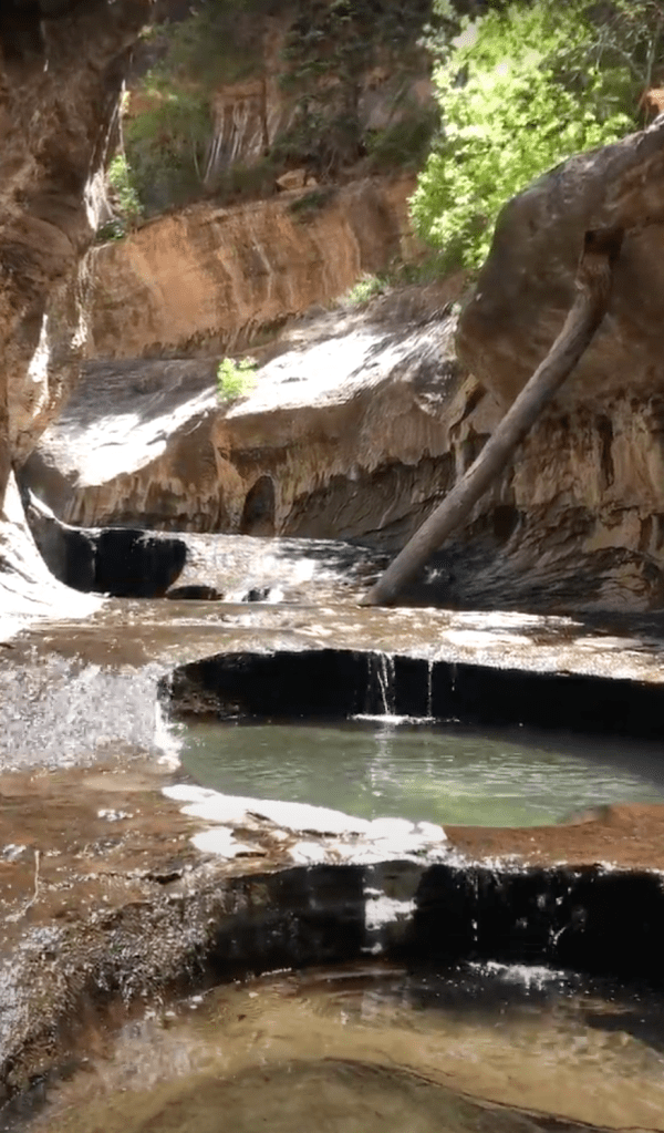 We definitely had a lot of preparation to do for the Subway, including mentally preparing ourselves. Unfortunately, the day we went was 102 degrees. Not ideal for this hike, but we had to suck it up. We both brought as much water as we could in our camelbacks and it still wasn’t enough. We did the bottom up route, which is about 9 miles out and back. Although, my Fitbit said almost 12 miles probably because of all the scrambling around rocks we had to do. The other route is the top down and involves repelling down waterfalls to get into the canyon. The hike in the very beginning and end was an extremely steep climb down the side of the mountain to get to the creek at the bottom.