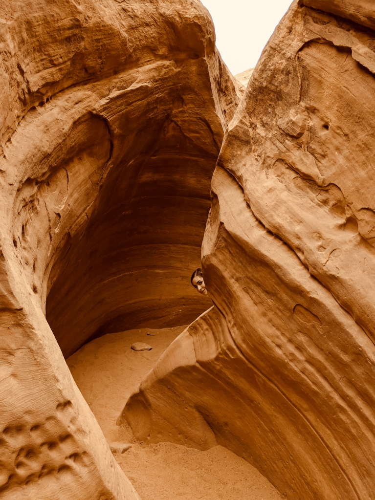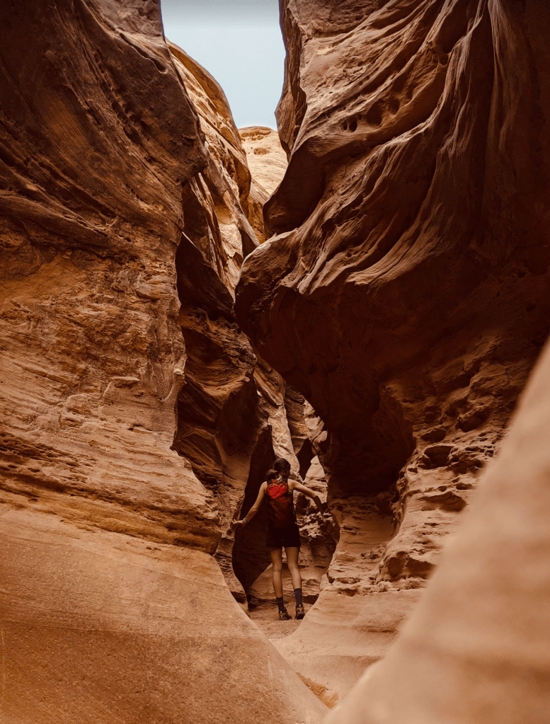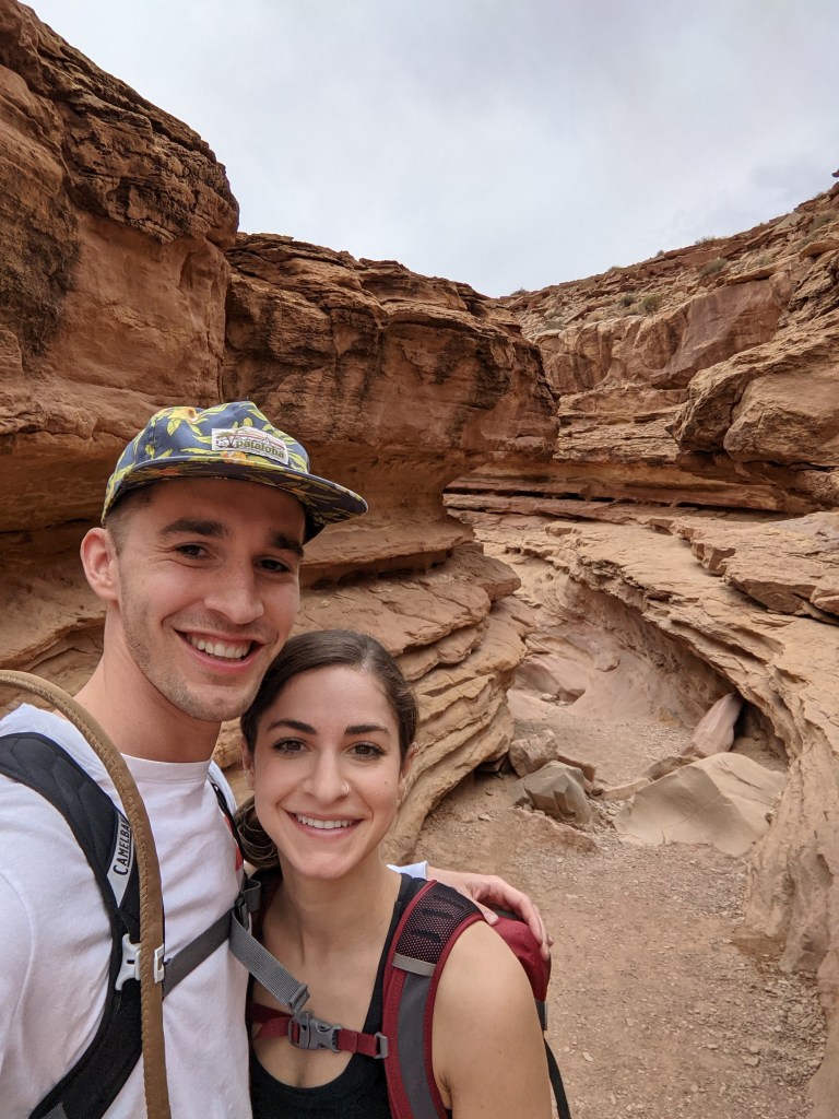After breakfast, it was time to start driving to our next location and start making our way South West. Our next stop was Little Wild Horse Canyon. This hike was super cool! Probably one of our favs, although hard to tell because all the hikes were so amazing and different in their own way. Little Wild Horse was cool because as you walk through, the canyons start getting more and more narrow throughout. In some parts you had to walk sideways to fit through, which is a little scary, especially being claustrophobic. It reminded me a lot of the Antelope Canyons in Page, Arizona. This hike was nice because it was pretty empty and we felt like we were completely on our own most of the time. Ian and I had so much fun walking through, climbing over and under rocks, and attempting to scale the wall. We ended up doing 4 miles out and back. Luckily, this hike was fairly easy and flat, other than climbing over some rocks here and there. Since it’s a slot canyon, we were told to be cautious about any rain on the radar because if there is a flash flood it can be extremely dangerous in such narrow canyons.