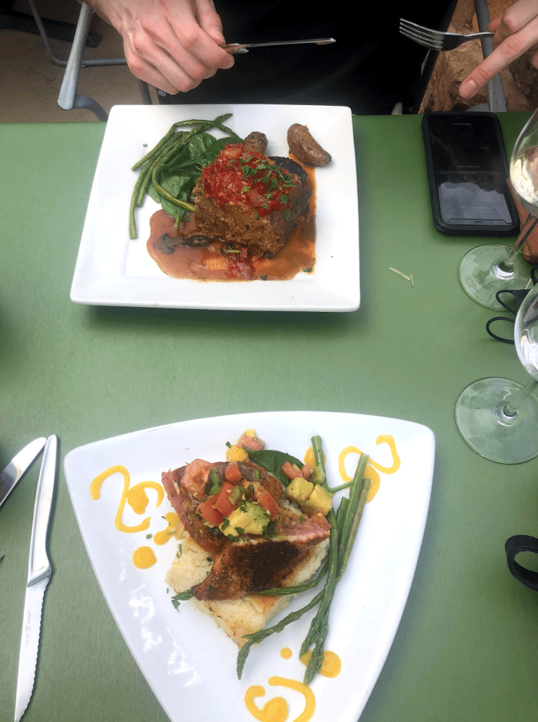 We got dinner at the Spotted Dog Cafe, which was a little on the pricier side, but amazing food! Apparently it get’s booked up for weeks, but someone told us to go wait in line right before it opened at 5pm. We did that and got first come first serve seating immediately and had a really cool view on their patio outside. After dinner, we stopped at this shop that had artwork created by different Native American artists. It was really cool and we ended up buying a lot from there. They had anything from hand woven wall hangings to intricate painted wood animal sculptures. We then headed back to our resort to hang out in the hot tub.