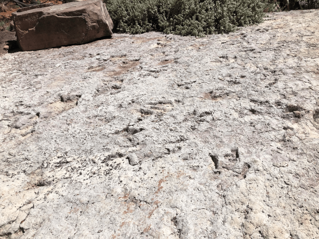Once we got to the bottom of the mountain inside the creek, we were in the thick of Zion wilderness. The trail was…well basically no trail and it was not marked at all. We were following footprints and trying to find rocks that had sand on them, indicating someone had stepped there. The entire trail was scrambling over rocks, walking through the river, and maneuvering around large boulders. We found real dinosaur tracks all over a large slab of rock that had been preserved. Insane! *cue the Jurassic Park theme song*