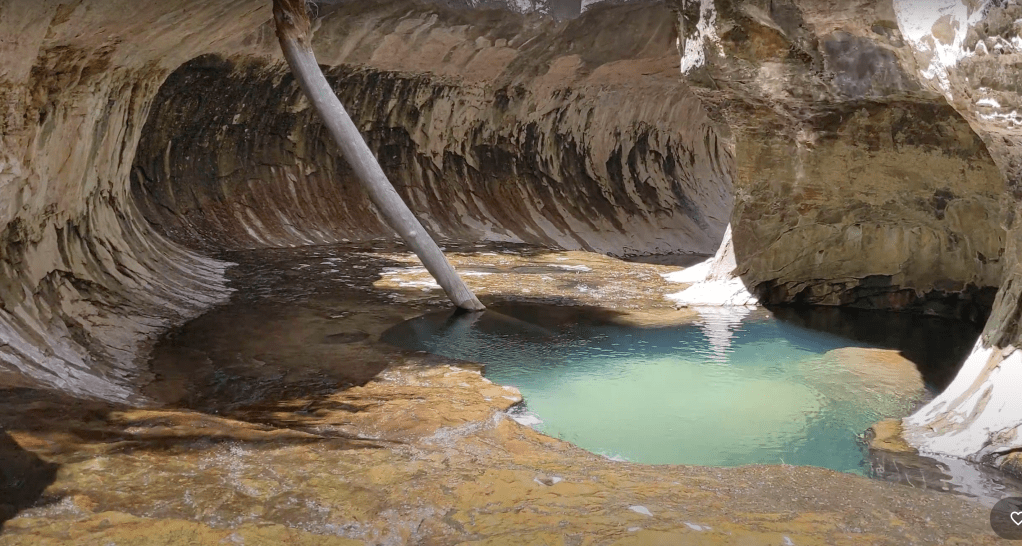 Finally after 4 miles, we got to the best part of the hike and it was probably the coolest thing I’ve ever seen. It was like a little oasis inside giant canyon walls. There were pools of bright blue water and waterfalls trickling everywhere. We walked through shallow waterfalls to reach this spot and of course jumped into the freezing cold water holes, which felt amazing on the scorching hot day.