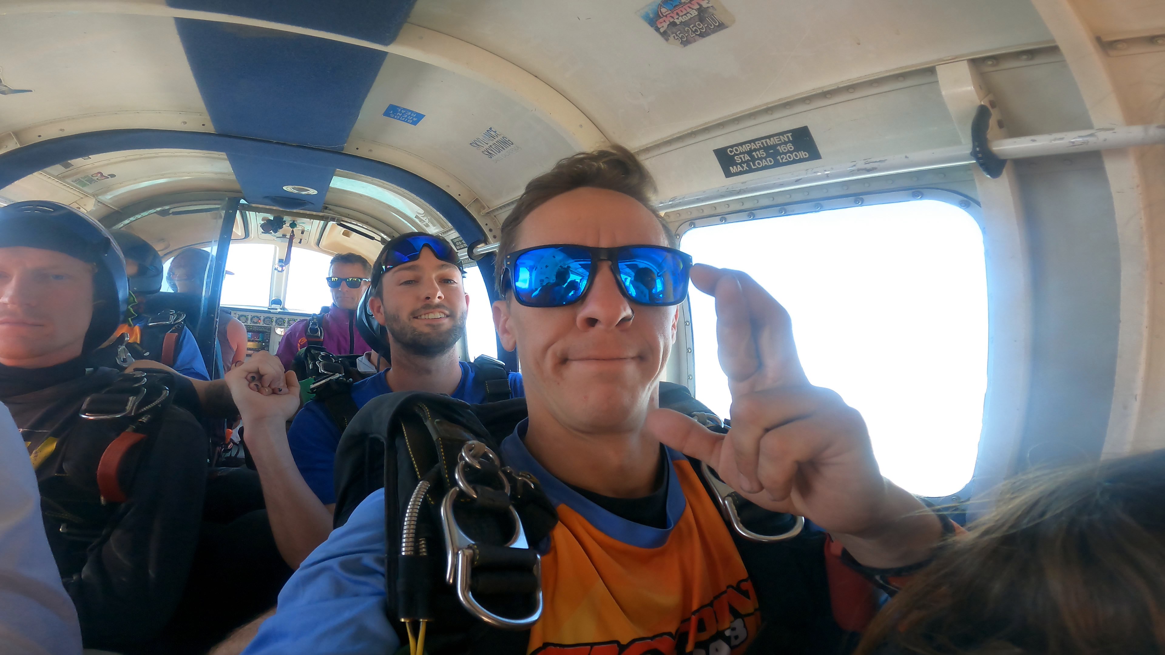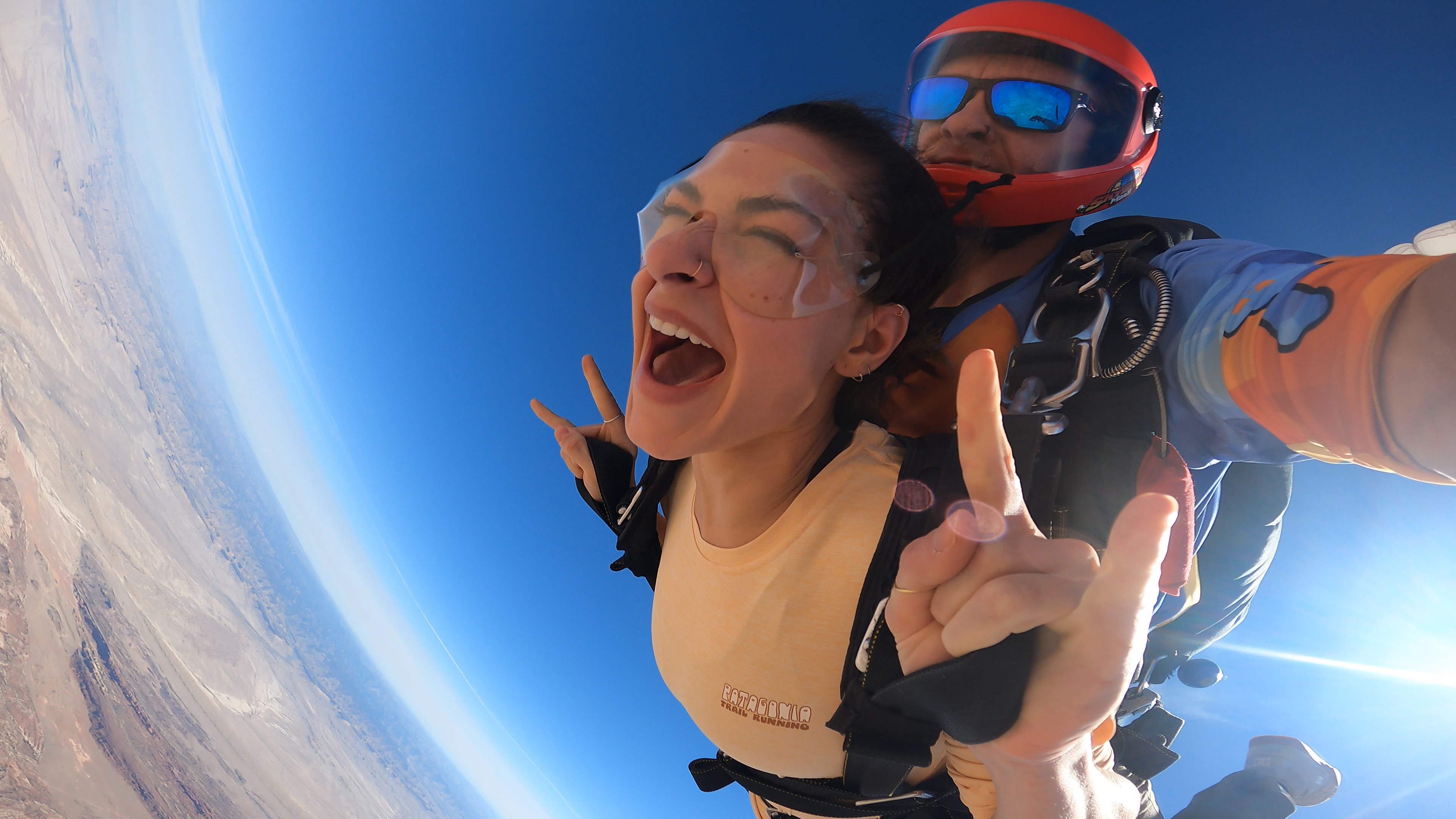 The following day in Moab we had to wake up fairly early, because we planned to ……jump out of a plane! I have been wanting to go skydiving for a long time and this seemed like the perfect opportunity with such amazing views in Utah. We found a skydiving place called Skydive Moab. They are highly rated and have good prices. Weirdly, Ian and I, didn’t feel nearly as nervous as we thought we would – instead very excited. The little airplane ride up to the top was probably the scariest part, because there was no turning back at that point!