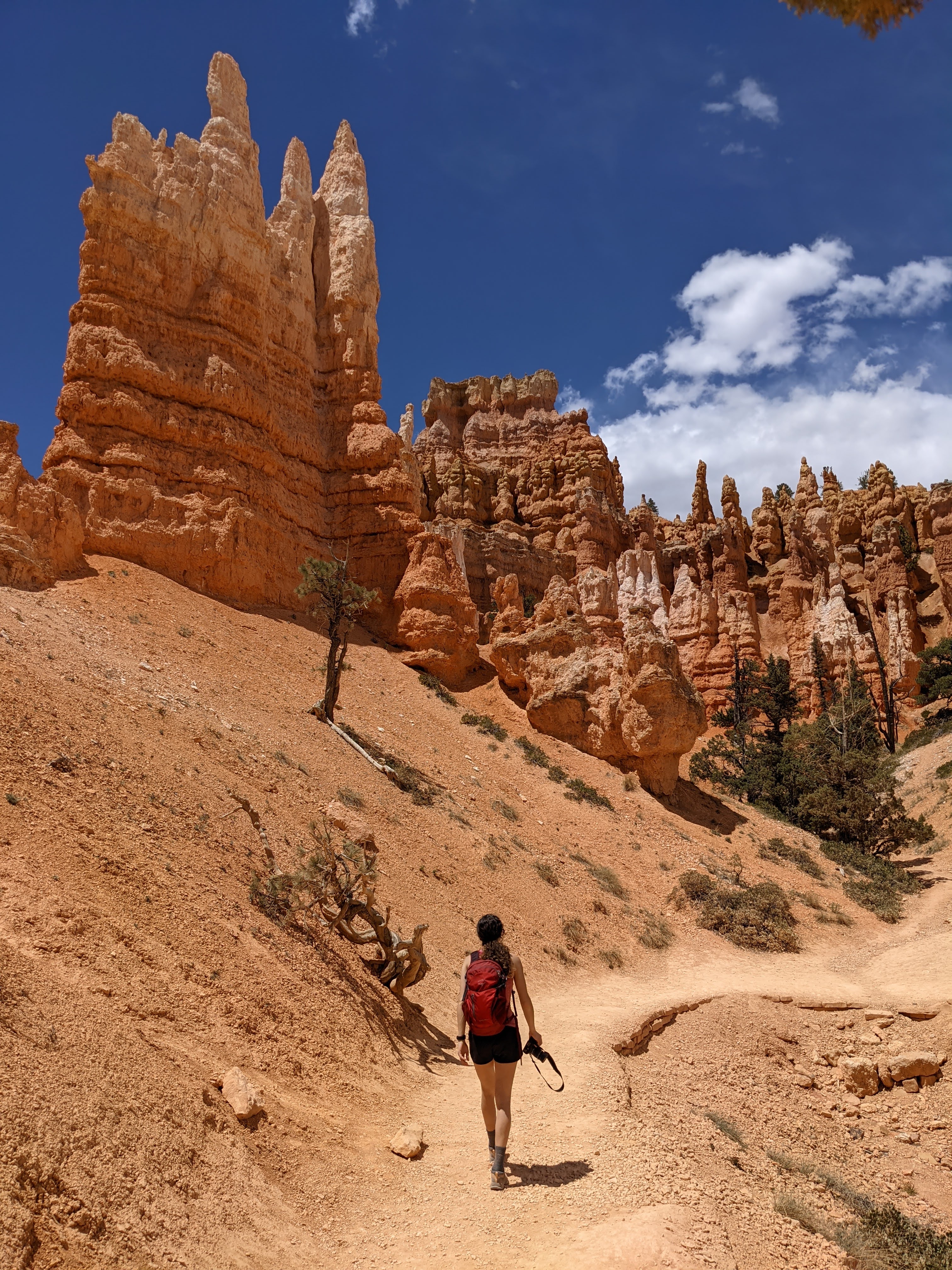 The next day, we headed to Bryce Canyon. This was amazing and I have never seen anything like this in my life. Bryce is covered in “Hoodoos”, which are really tall cone-shape type rock formations. The colors in Bryce are a beautiful, bright coral color. We did the Wall Street and Queens Garden 3.2 loop hike, which was one of the shorter hikes. We started at the Wall Street side because it is a lot steeper on this side and I definitely wouldn’t want to end the hike coming up that way. Other than the steeper beginning and ends of this trail, the rest of the trail was fairly flatter and not too hard of a hike. Hiking through Bryce Canyon kind of felt like we were on a different planet and we kept saying we felt like we were in “Star Wars” lol.