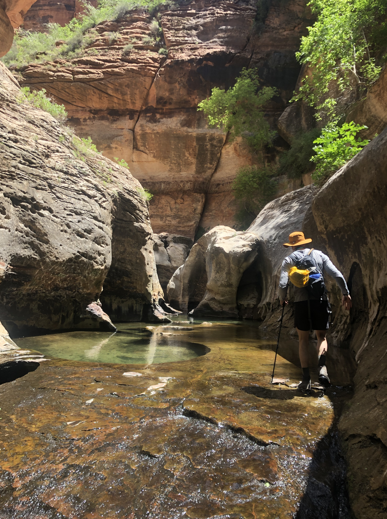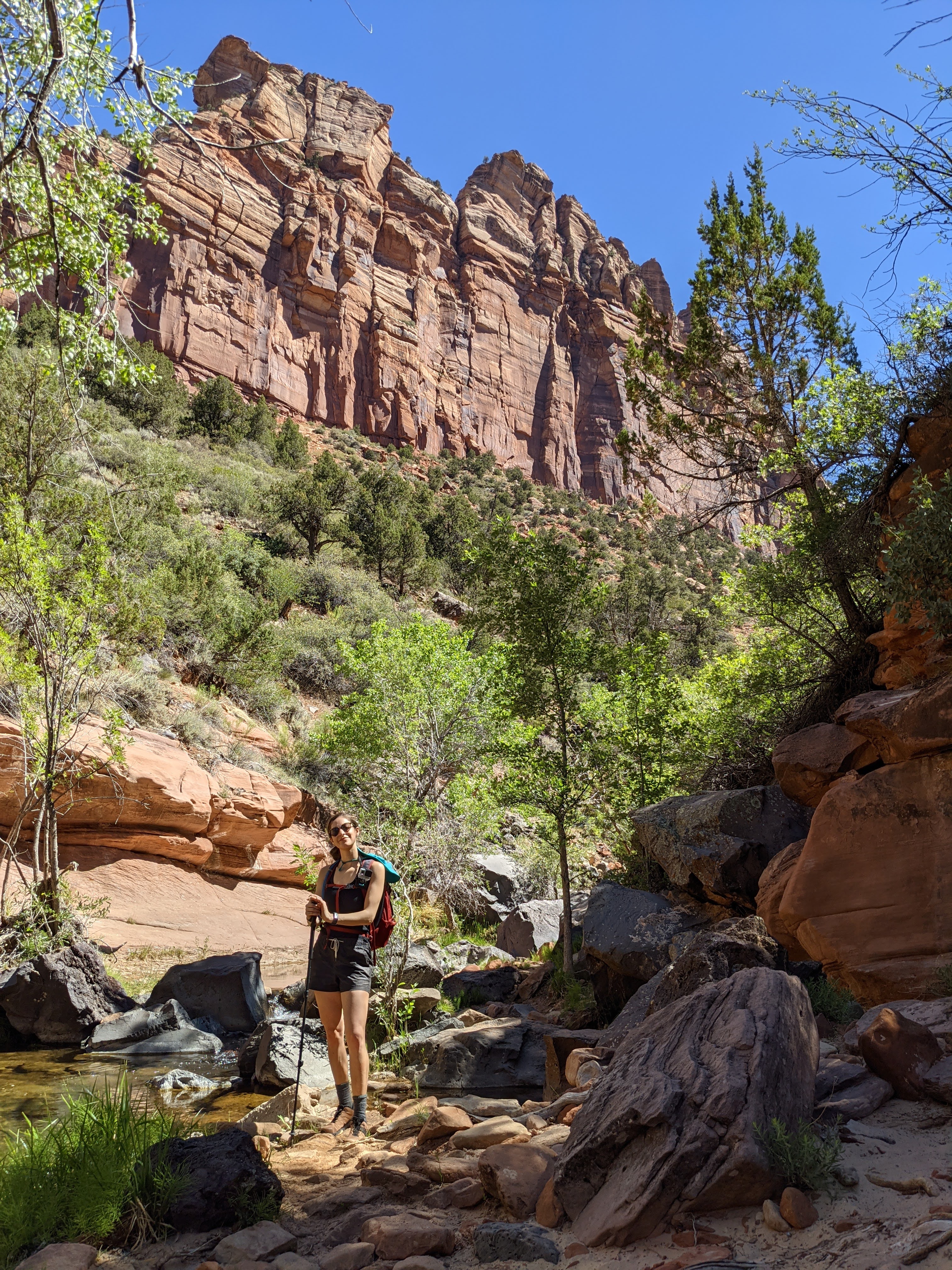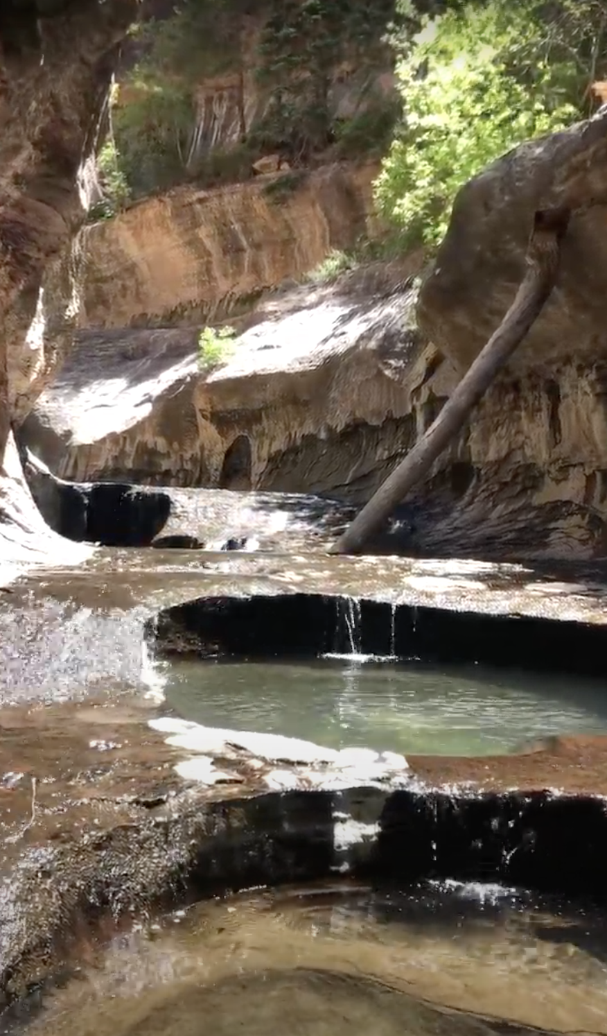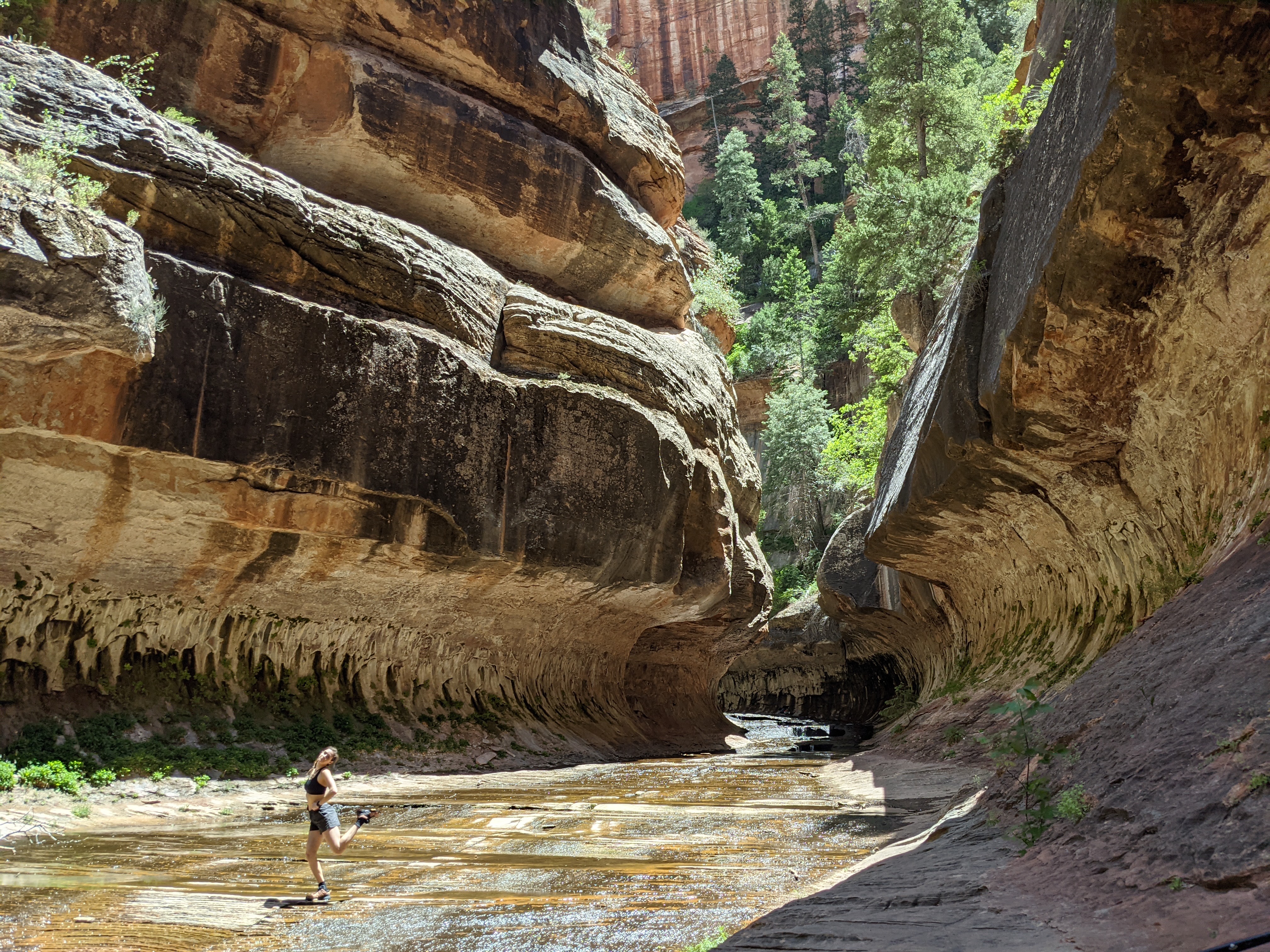 We definitely had a lot of preparation to do for the Subway, including mentally preparing ourselves. Unfortunately, the day we went was 102 degrees. Not ideal for this hike, but we had to suck it up. We both brought as much water as we could in our camelbacks and it still wasn’t enough. We did the bottom up route, which is about 9 miles out and back. Although, my Fitbit said almost 12 miles probably because of all the scrambling around rocks we had to do. The other route is the top down and involves repelling down waterfalls to get into the canyon. The hike in the very beginning and end was an extremely steep climb down the side of the mountain to get to the creek at the bottom.