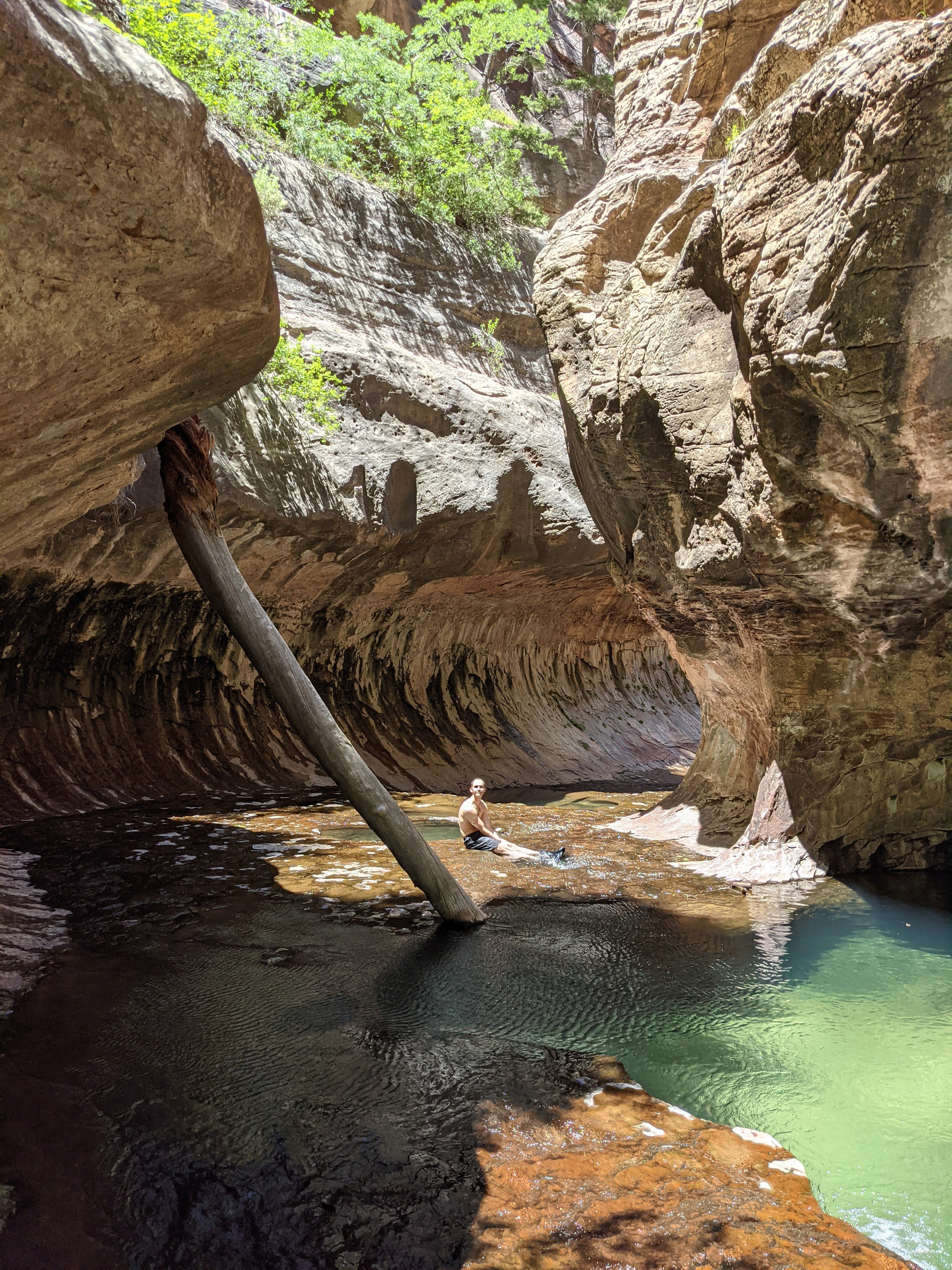 The final day of our trip we did the Subway hike. This was definitely the coolest, but hardest hike I have ever done. This one was for real like Jurassic Park! In order to do this hike you have to apply for a lottery to get a permit. We both applied a few months in advance. Luckily, I won the lottery and got a permit for two people! After talking to some locals, we realize how lucky we were to get a permit. They said the Subway is one of those once in a lifetime opportunities that a lot of people in Utah dream to go on! Since the permits are limited for each day, we barely saw anyone on this hike. If we didn’t get the permit, we were going to do Angel’s Landing.