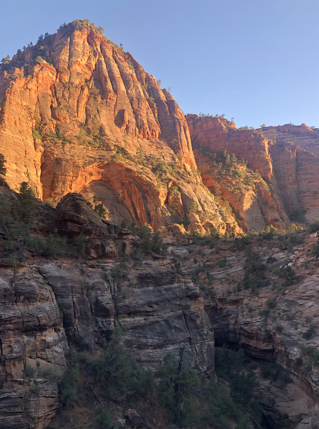 We stayed in a little cabin at Zion Ponderosa Ranch Resort in Orderville right outside of Zion. We would of stayed in Zion, but everywhere was completely booked up. The drive into Zion from there was about 20-30 min depending on traffic. Once we arrived into Zion National Park, the elevation is slightly lower inside the high canyon walls and it was super hot, in the 100’s. We took it easy this first day in Zion because we had been doing so much hiking and had two of the hardest hikes ahead of us.