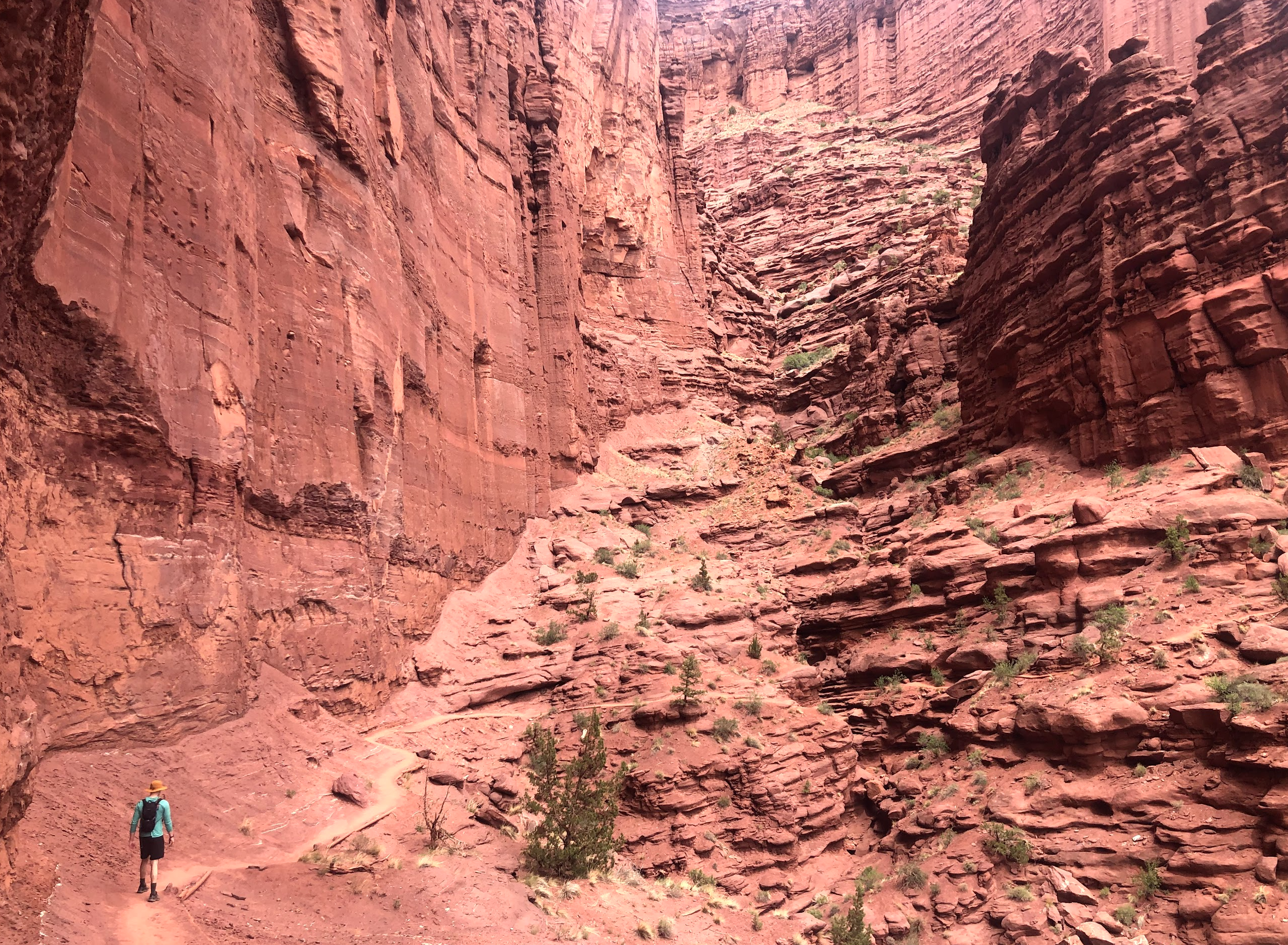 After our skydiving experience, our next stop in Moab was Fisher Towers. This hike was super cool, but again a moderate and more difficult hike in the summer heat because of all the uphill elevation gains. Ian and I quickly realized, there aren’t really “easy” hikes in Utah. Even the moderate level hikes are on the harder side, especially in summer. So it’s good to be mentally prepared for that. This trail was really beautiful and had unique rock formations. Being inside the giant canyon walls on this hike makes you feel minuscule. This trail was not very crowded at all, which was nice. We accidentally took a wrong turn in the very beginning and had to back track, but when we eventually found the trail, the rest was well marked and easy to follow. Over all, this was a really cool hike!